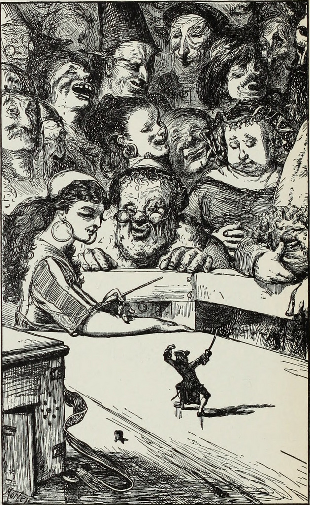 The inhabitants are similarly proportioned – 'tall as an ordinary spire steeple', he notes. Even a dog has the mass 'of four elephants'. Gulliver is eventually found by a farmer, who exhibits him for profit. Despite this demeaning experience, the traveller finds some crumbs of comfort. He strikes up a friendship with the farmer’s nine-year-old daughter, whom he calls Glummdalclich – which means little nurse in the giants’ language – because she was small for her age, 'not above forty feet high'.